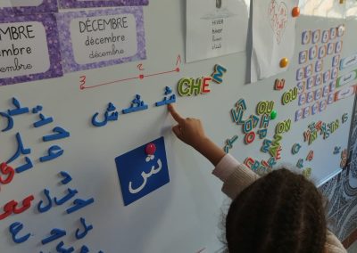En pré-élémentaire, nos élèves sont en immersion dans les deux langues d’enseignement, cela pour deux objectifs… Le premier objectif est de permettre aux enfants d’acquérir un niveau de compréhension et de communication fluide et spontanée dans les deux langues : l’arabe et le français. Le second objectif est de favoriser l’acquisition de science religieuse tel que le Coran et une éducation islamique tout en facilitant l’entrée en élémentaire avec des fondations solides dans les matières générales du programme marocain et français.